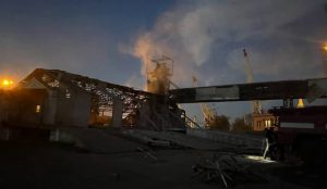 ภาพจากหน่วยงานฉุกเฉินยูเครน เมื่อ 2 สิงหาคม 2023 เผยให้เห็นอาคารที่เสียหาย บริเวณท่าเรือยูเครนหลังการโจมตีช่วงค่ำคืนในโอเดสซา ทางการยูเครนเปิดเผยเมื่อวันพุธว่า โดรนรัสเซียเข้าโจมตีโครงสร้างพื้นฐานบริเวณท่าเรือในโอเดสซา ทางตอนใต้ของยูเครน ระหว่างที่ส่งโดรนเข้าโจมตีกรุงเคียฟ เมืองหลวงของประเทศในเวลาเดียวกัน กองทัพยูเครน ระบุว่า การโจมตีของรัสเซียเข้าทำลายระบบลำเลียงธัญพืชและทำให้เกิดเพลิงไหม้บริเวณเขตอุตสาหกรรมและบริเวณท่าเรือในอิซมาอิล โอเลห์ ไคเปอร์ ผู้ว่าการเขตปกครองโอเดสซา ระบุผ่านเทเลแกรมว่าการโจมตีของรัสเซียทำให้เกิดความเสียหายแต่ไม่มีรายงานผู้บาดเจ็บจากเหตุโจมตีดังกล่าว และว่า...